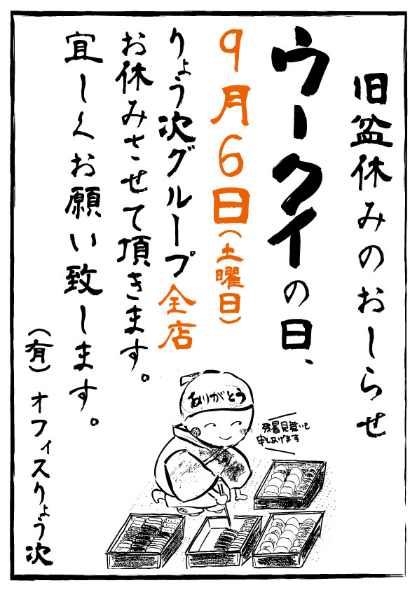 旧盆(ウークイ)全店舗お休みのお知らせ